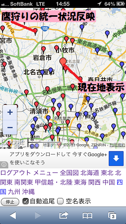【スマートフォンで、鷹狩り・国盗りの情報を確認&現在地をリアルタイム表示】